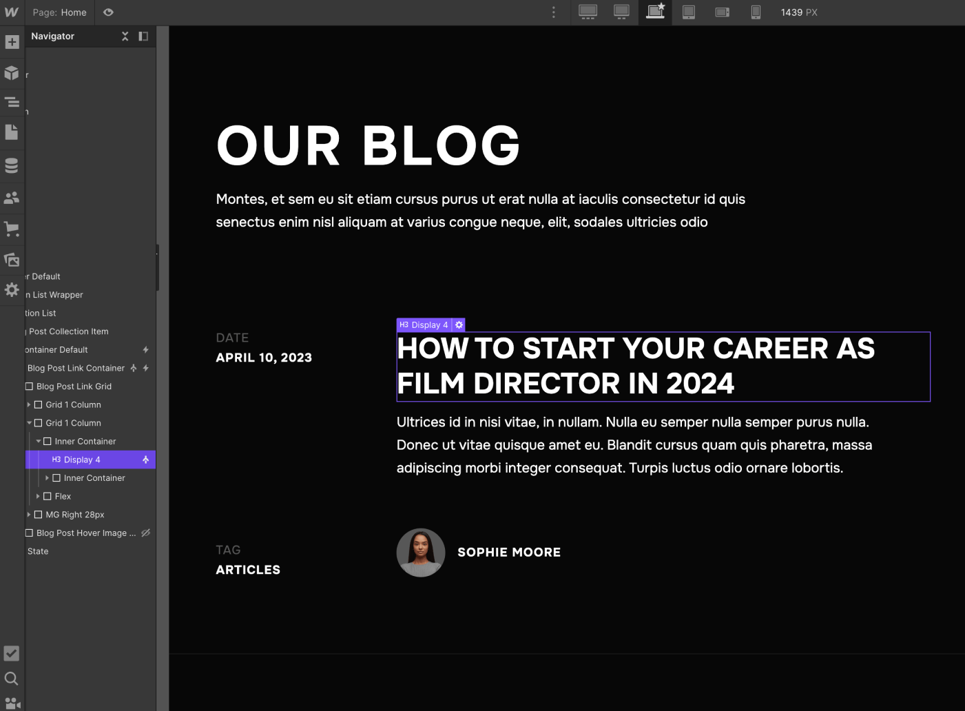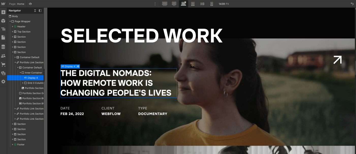 Everytime you make a change (for example, you create a new section design), it's a good practice to go to your Viewport top navigation and see how it looks on Tablet and Mobile.